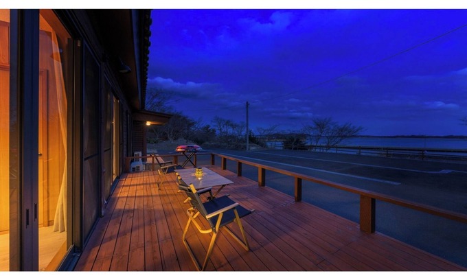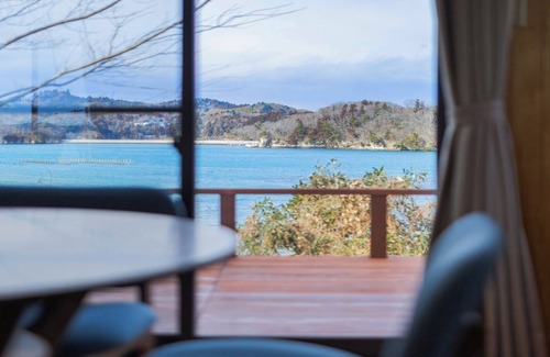 We offer you a soulfilling moment as if the waters surface were calm and serene / Hibiki is a modern and tasteful log cabinstyle lodge located on the cape of Matsushima with a special seat overlooking the sea
