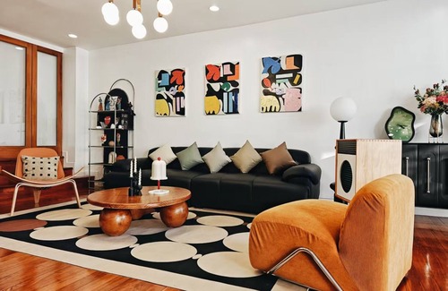The Hidden Gallery villa is nestled at the crossroads of Bangkok’s most stylish and secure neighborhoods, Thonglor and Ekkamai. The property offers four bedrooms, 4.5 baths and rain showers, and comfortably accommodates up to ten guests. Comfort meets convenience: the ground floor features a private car park (two vehicles), a music lounge, dining area, and outdoor relaxation zone, while the upper floor is equipped with a 55-inch Samsung smart TV. The garden is furnished with seating for many—an ideal spot to unwind, savor good food, and spin vinyl records.