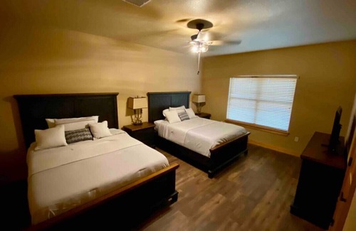 Relax with the family at this peaceful 2 bedroom 2 bath luxury cabin in the Gruene Historic District. Surrounded by beautiful huge oak trees and less than a minute away from the Guadalupe River. Walking distance from the famous Gruene Hall, unique and amazing shops & delicious restaurants in Gruene. Conveniently located less than 3 miles away from the famous water park, Schlitterbahn. This cozy, luxury cabin is perfect for that family getaway you’ve been dreaming about.