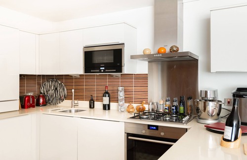 You will have plenty of restaurants, coffee shops, pubs to choose from in the close vicinity of the flat. There is also a high end Waitrose supermarket open 7 days a week just around the corner.