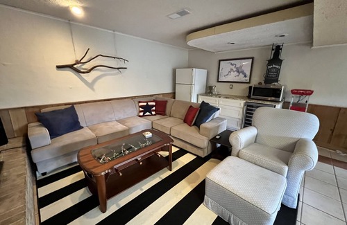 Note: There are steps going down to the house, and then when you walk in the door you take a few steps to the upper level or a few steps to the lower level. This house is not wheelchair accessible and is a good fit for those who are comfortable climbing stairs.