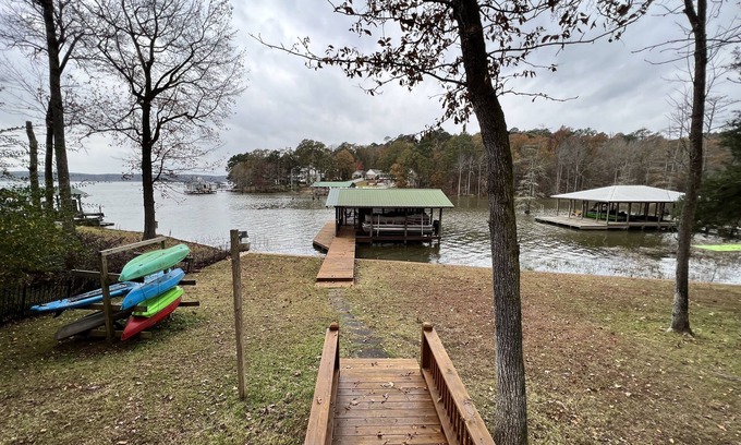 Lakeside views and fun for the whole family. Gather your friends and family together and come and share our lakeside getaway. Just a 30 minute drive to Sterlington and West Monroe, you will love our beautiful Lake D’arbonne views and will have lots of space to enjoy them. With two living areas, one upstairs and one downstairs, you’ll have room for your group to spread out. Our spacious kitchen is thoughtfully stocked with everything you need to cook a meal for your family. Enjoy your morning coffee on our screened porch right off the kitchen and dining room. Our outdoor patio is perfect for taking advantage of the gorgeous lake views while you enjoy dinner with friends and family. There’s so much to do, including fishing, swimming off the dock, an air hockey table, foosball table, and corn hole. You can explore the lake by kayak. Ours are kept on site so you can conveniently access them, for an additional fee. You can lounge in our boat house and relax close to the water or watch the kids while they swim. This is a house you will want to come back to time and time again.