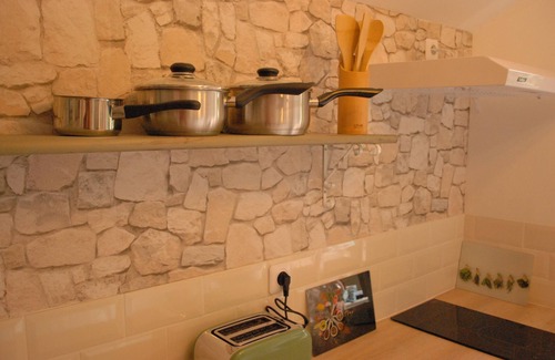 Le P'tit Logis is a cosy delightfully decorated, romantic gite for 2 with a 60 m2 garden a south-facing sundeck, ideal for relaxing in the sun and snoozing under the trees. There is a barbecue of course and a small terrace. The kitchen is very well equipped, and the bedroom has a king-sized bed. There is a large walk-in shower and period bathroom furniture.