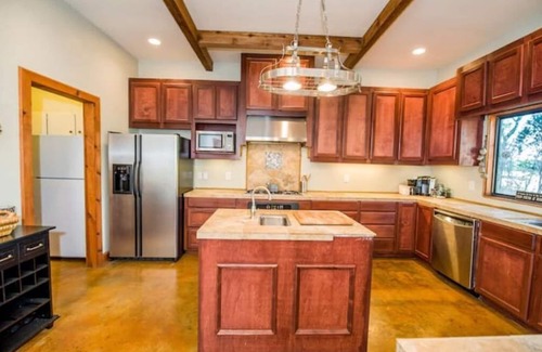 Hideaway Lodge sits on half an acre of waterfront land and is tucked back in a peaceful secluded corner of Cedar Creek Reservoir. The home is a 3 bedroom, 2 bath with a fully stocked chefs kitchen and plenty of common living space for dinners, games, entertainment and relaxing. The patio is perfect for sunrises and sunsets with plenty of comfortable seating. Enjoy views of the open water and take in the wildlife on the protected nature preserve across the water. The property has over 200 ft of waterfront to fish from or hop in the jon boat or kayaks and explore. Tons of outdoor space for grilling, roasting s’mores over the fire pit or playing cornhole. Plenty of private gated parking for vehicles and a boat on the property. Boat tie cleats on property retaining wall and access to nearby gated community boat ramp. This place has it all!