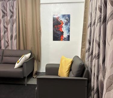 HideHaus Haven is located in Kumasi, just 3.2 miles from Baba Yara Stadium and 14 miles from Owabi Wildlife Sanctuary. The apartment is 3.7 miles from Manhyia Palace. The apartment offers free Wifi and free private parking. The air-conditioned apartment consists of 1 bedroom, a living room, a fully equipped kitchen with a microwave and a kettle, and 1 bathroom with a walk-in shower and free toiletries. Towels and bed linen are offered in the apartment. For added privacy, the accommodation features a private entrance. Kumasi Airport is 1.2 miles from the property.
