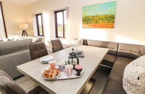The living areas in the property consist of an open-plan living space with a kitchen offering an electric oven and hob, microwave, fridge/freezer, dishwasher, and wine chiller, a dining area with overall seating for 12 people, a sitting area with a TV, electric fire and speakers, as well as a utility with a washer/dryer. The bedrooms consist of a double with an en-suite bathroom, another double with an en-suite shower room, and a twin with an en-suite shower room, along with a cloakroom. Outside, there is an enclosed rear garden with lawned area, decking, hot tub and furniture, as well as off-road parking. Within 0.6 miles, you will find a shop, and within 0.2 miles, a pub. Two well-behaved dogs are welcome, and smoking is prohibited here. WiFi, fuel, power, bed linen and towels are all included in the cost. Treat your loved ones to a stay at a stunning retreat in Northumberland, choose High Church Hill. Note: There are steps up to the decking, please take care. Note: The en-suite in the master bedroom is open-plan with the rest of the room, please consider this when booking
