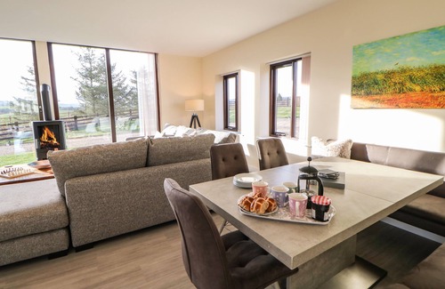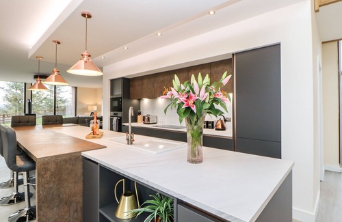 Amenities: Ground source heat pumps with electric fire. Electric oven and hob, microwave, fridge/freezer, washer/dryer, dishwasher, wine chiller. Smart TV with Netlix, speakers, WiFi. Fuel and power inc. in rent. Bed linen and towels inc. in rent. Off-road parking. Enclosed rear garden with lawned area, decking, hot tub and furniture. Two well-behaved dogs welcome. Sorry, no smoking. Shop 0.6 miles, pub 0.2 miles (10 minute walk). Note: There are steps up to the decking, please take care. Note: The en-suite in the master bedroom is open-plan with the rest of the room, please consider this when booking. Minimum 3 night stay