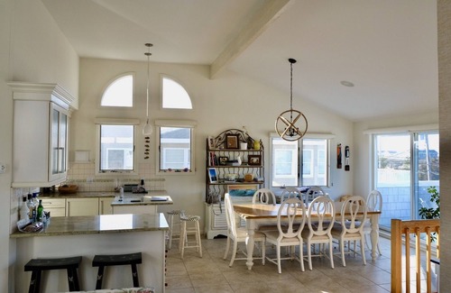 Luxurious Beach House steps from the beach via your private tree lined dirt path. 360 degree views from the roof deck so you can catch the eastern sunrise with your coffee and the western sunset with your cocktails. Two additional upper level decks with furniture and a large gas grill. High end Chef's Kitchen with flawless appliances, a wine fridge, island seating, indoor and outdoor tables, and all the modern cookware one would ever need. There is a 2 sided fireplace for cooler off season nights that opens to the kitchen and living room. Outside there is a beautiful heated pool, covered patio, and outdoor shower complete with a clothes line for bathing suits. An additional fridge and freezer on the ground level along with an exercise bike, 5 bicycles, 5 surfboards, tons of beach chairs, coolers, etc, all for your enjoyment.