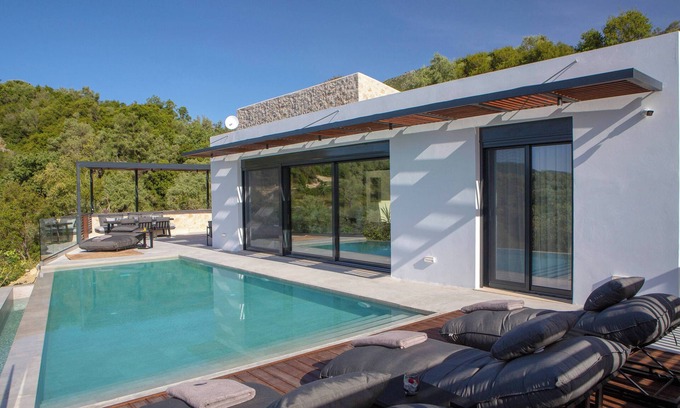 Villa two, part of Faos Villas complex, is designed with three simple principles: contemporary style, modern materials and functional open spaces.