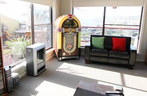 There are two bathrooms and toilets, a large kitchen/dining area, two guest lounges with large screen TVs and surround sound and a large collection of music, CDs, DVDs,movies, a music book library and music memorabilia. The downstairs lounge has a genuine working Wurlitzer jukebox. A large private balcony has fantastic sea views and barbecue and dining facilities.