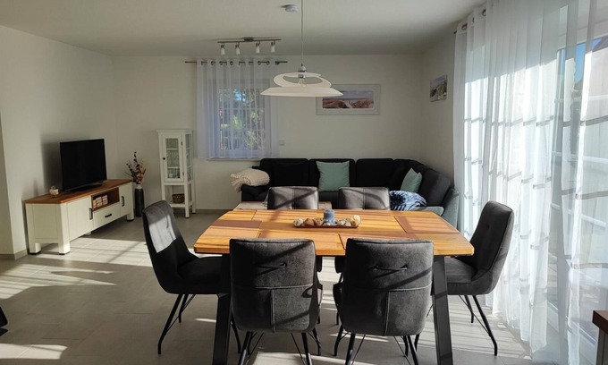 High-quality 100sqm vacation home for 6 people with fireplace and garden directly on the dike is located in Hilgenriedersiel. High-quality 100sqm vacation home for 6 people with fireplace and garden directly on the dike provides accommodation, featuring Parking, TV, Balcony/Terrace, among other amenities. This House features Parking, TV, Balcony/Terrace, to make your stay a comfortable one.