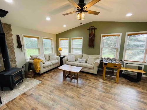 High-View Catskills Cabin offers accommodations in Margaretville, 7.6 miles from Delaware Ulster Railroad. There's a sun terrace and guests can use free Wifi and free private parking. The air-conditioned vacation home consists of 3 bedrooms, a living room, a fully equipped kitchen with a dishwasher and a coffee machine, and 2 bathrooms with a shower and a hair dryer. Towels and bed linen are available in the vacation home. The property has an outdoor dining area. The area is popular for skiing, and ski equipment rental is available at the vacation home. Stewart International Airport is 86 miles from the property.