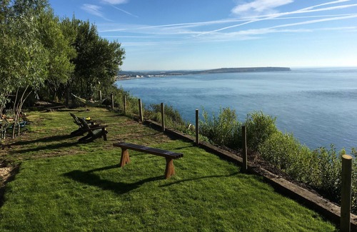 Probably the best view on the Island. Highcliff Cottage at Luccombe is the dream holiday retreat, secluded, tranquil with 180 degree sea views. Relax on the deck, listen to the bird song and breathe in the fresh air. Situated 100m above the shoreline between Shanklin and Ventnor, Highcliff Cottage is designed in the boathouse style with beautiful detailing inside and out. Includes exclusive use of a large garden. The famous Isle of Wight Coastal Path is at the front gate.