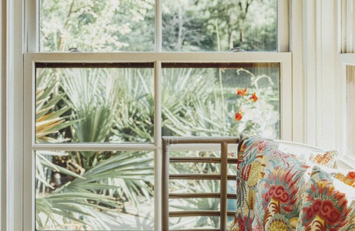 As you first pull into the gravel driveway, you'll be greeted by lush landscape and architecture reminiscent of Colorado. As you open the front door you are invited into a home that greets you with charm around every corner. Surround sound music plays from every room and sets the tone for your vacation. From the large fireplace to the wood ceiling beams to the tiled ceiling accent, these little funky details are at every turn. Entertain guests or just relax and enjoy this private pool and spa that is surrounded by lush greenery from every angle. This truly unique property sits at the edge of a greenbelt, so you gaze unto infinite greenery. Flowing waterfalls trickle into both sides of the pool creating an atmosphere that reminds you of a Palm Springs vacation home. Sip your cocktail as you get a tan, relax with your family or friends, and make wonderful memories.
