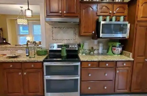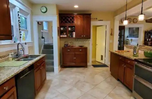 Five miles from Churchill Downs! Charming and beautifully decorated 100-year-old Craftsman, this 4 bedroom, 3 bathroom home is on a quiet street, yet steps from Bardstown Road's "Restaurant Row," voted the Best Street in Louisville. Huge fully equipped kitchen. Dining room seats 8. Large back patio with plenty of space for al fresco dining, and a peaceful covered front porch. Lots of space to relax indoors, too, in the living room, family room, or den, each with a TV.