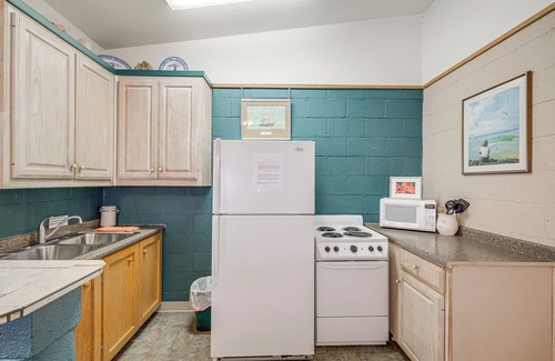 - Refrigerator, stove/oven, microwave