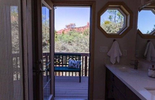 Newly renovated home has a peaceful and relaxed feeling to make your Sedona stay refreshing and recharging. The ample back deck feels like being in a tree house.