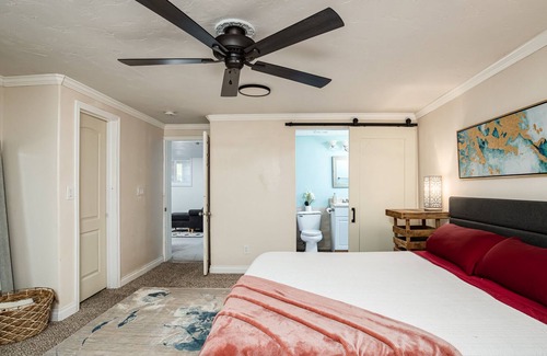 1 Master bedroom with a king-sized bed, full closet, attached full bathroom.