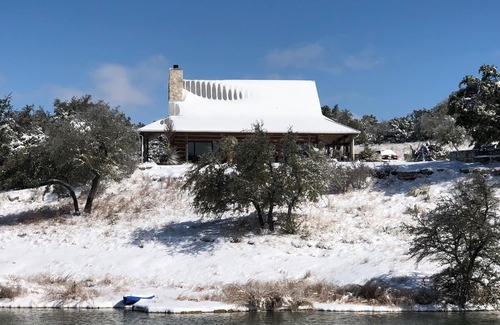 Ranch cabin sleeps 8, full kitchen, dining table seats 6, bar seats 4, spacious living area, walk-in showers, porch with a view, 1 acre lake and 1/2 mile live water at Middle Creek, access to hiking trails on 188 acre hill country ranch, outdoor fire pit, fishing, birdwatching and other wildlife viewing.