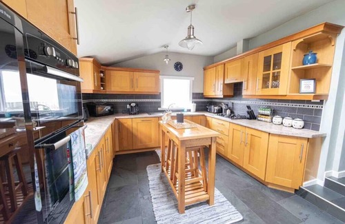 The kitchen is well-equipped with everything you could possibly need for creating delicious home cooked meals. Appliances include oven, grill, microwave, fridge, freezer, dishwasher, kettle, toaster and Bosch Tassimo coffee maker. All plates, pans, dishes and cutlery are provided. There is a free-standing island table and stools which is a great spot for your morning coffee! A washing machine and tumble dryer are provided in the laundry room.