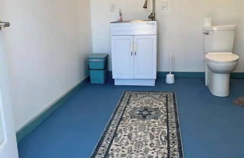 Guests have access to the tent and and deck with all the amenities provided there as well as a full bathroom and shower attached to the garage. Also, the property has lots of room to explore!