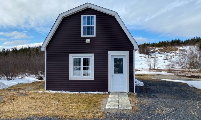 Just 5 minutes to the centre of the town of Stephenville and the Stephenville Airport. Close to quad and snowmobile trails, fishing rivers and an expansive outdoor area. Once inside the cottage, you can ejoy the open lower level with a washroom, open kitchen and cozy living room. Upstairs you will find wonderful views in the loft style bedroom with sitting area. Wireless internet provided. This is a quiet, relaxing place to stay after your day enjoying the wonderful outdoor activities available in the area. Don't forget to take advantage of the sledding hill out back and the small stream just outside the back door!