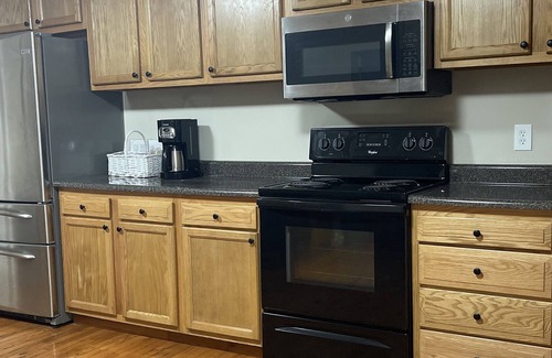 We offer a large parking area for up to 4 trucks and trailers next to the house. The exterior of the home, including the parking area, have security cameras.There are two decks with chairs, one also has a charcoal grill and picnic table. You will find a large carport with tables and chairs to relax after a long day of riding (perfect in case of inclement weather). There's also a firepit in the yard for those chilly nights! Our newly renovated trail house sleeps up to 13 people comfortably and has central air and heat. We have 5 bedrooms (8 beds, no bunks, twins are XL), linens, extra blankets and pillows are provided. The largest bedroom has it's own bathroom attached and a television with a Fire TVstick.There are two full bathrooms with Shampoo, Conditioner, Body Wash, TP and Towels provided. You will also find a large eat in kitchen with all full-size appliances, including dishwasher, microwave, toaster, crock pot and coffee maker. Coffee creamers, sugars, trash bags, dishwashing soap/pods and paper products are provided. The cabinets are fully stocked with all the plates, glasses, pots, bowels, utensils, etc that you should need to prepare a meal for a large group. The living room has a comfy leather sofa and loveseat with a second dining area and 65" Smart TV with over 200 free channels or sign into your own streaming account! Our laundry room has 2 washing machines and 2 dryers (detergent provided). We also have two areas with plenty of hooks and shelving to hold your shoes, helmets, etc. We provide a tablet for guests to borrow that has the trail systems already loaded on it. (you must let us know if you wish to borrow it) About 5 miles up the road you will find Bud Ez-Stop, which is a trail permit retailer, has ready-made food, as well as food to order, groceries, fuel etc. Ziggy's powersports, Riders Paradise Restaurant and Outlaw Bar and Grill are approx. 8 miles away. Mullens is about 12 miles away and has multiple ATV friendly restaurants and stores. ATVs are permitted on all roads for up to 20 miles. We are approximately 24 miles from Winterplace Ski Resort for skiing and snow tubing.