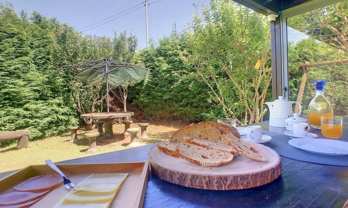 Our house has a lot of outdoor space to relax, socialize with family or friends. We have a beautiful covered barbecue area for incredible lunches or dinners. This is the perfect place to make a typical traditional Madeira dish, our Espetada!