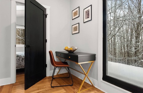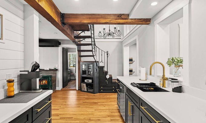 The Hillside Hummingbird House features two elegantly appointed bedrooms, each outfitted with luxurious queen-size beds. This setup ensures that everyone has a restful night's sleep after a day filled with exploration or relaxation. The convenience of two full bathrooms adds to the home’s appeal, providing ample facilities for guests. The main floor bathroom is thoughtfully designed with a standalone shower, vanity, and toilet, conveniently located just off the kitchen. Meanwhile, the second-floor bathroom boasts exquisite luxury tile work, a combination tub and shower, vanity, and toilet, creating a spa-like experience for guests.