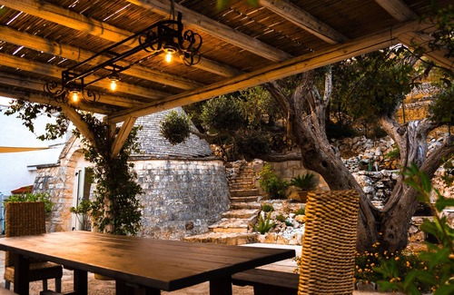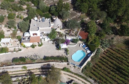 Perched on a hillside, 350m above sea level, with spectacular 360° views of the beautiful unspoilt Canale di Pirro valley, this spacious villa is a perfect location to enjoy long hours of Puglian sunshine and unforgettable sunsets. Overlooking vineyards, the large terraced garden, abundant with fig, cacti, and olive trees, creates an oasis of peace and tranquility. Multiple outside dining/entertainment terraces all with views across the valley, a south facing pool & sun terrace, a traditional 350 year old trullo kitchen fitted with all modern equipment and a contemporary beautifully finished living space.