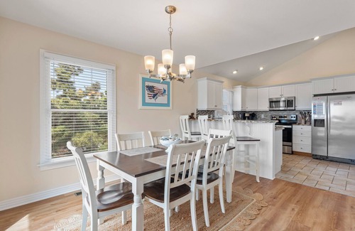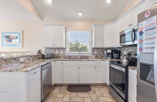 After a day at the beach or on the golf course, come home and gather in the comfortably furnished, open-concept great room. The lower-level den and a top-level loft provide additional living space, and a fully stocked kitchen has everything you need for preparing meals at the house. Two of the three bedrooms are spacious primaries, both with ensuite baths for plenty of privacy.