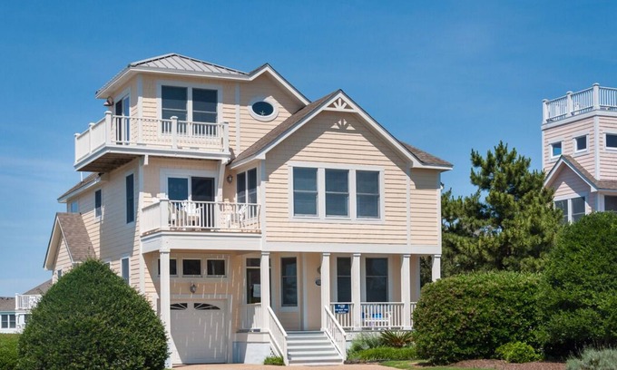 Views, Views, Views at Hilltop Haven! Enjoy rare, magnificent views of the sound and ocean from one of the highest points in Corolla. This charming coastal retreat includes a private pool, hot tub and two levels of decks for outdoor lounging.