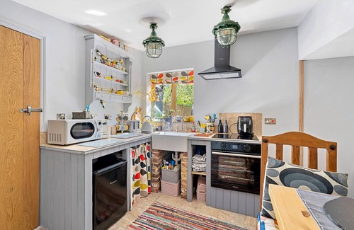 If you're yearning to slow down and reconnect with nature, Hilltop Stable offers the perfect escape. Nestled on the edge of a historic farmstead, this lovingly converted stable invites you to retreat from the rush of everyday life and immerse yourself in the peace and romance of the countryside.Start your day with coffee in the charming front garden, complete with a patio and outdoor furniture, or unwind in the spacious rear garden, where a firepit, comfortable seating, and views of open skies await. There's secure bike storage for your rural adventures and private parking for two cars. One small, well-behaved dog is welcome to join you, though smoking is not permitted.Inside, the open-plan layout combines rustic charm with thoughtful comfort. A cozy double bed, snug living and dining areas, and a well-equipped kitchen provide everything you need for a relaxed stay. The bathroom features a classic roll-top bath and a heated towel rail, perfect for soothing soaks after a day outdoors. Please note that there is NO stand up shower. You'll also enjoy electric central heating, complimentary electricity, Wi-Fi, bed linen, towels, and a starter supply of logs for the firepit.Step outside to your private patio, where a swing chair invites you to sway gently beneath the open sky. Meander through your exclusive outdoor space — complete with a picnic table, firepit, private woodland, and open fields. Don't be surprised if the resident Shetland pony wanders by to say hello.Whether you're curling up with a book or setting out to explore the nearby New Forest National Park, Hilltop Stable offers a retreat into nature and simplicity. With a variety of walking trails, cycling routes, and characterful pubs and restaurants just a short drive away, you'll find that every moment here is made for slowing down and savoring the good life.The garden is not fenced off so dogs will need to be monitored/kept on a lead. Pet policy: We love welcoming four-legged friends, but due to the nearby livestock, we can only accommodate small well-behaved dogs.