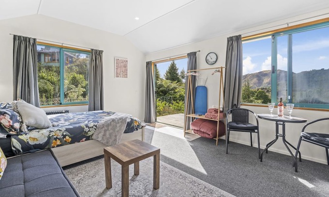 Just a short 5-minute drive from the cottage will take you to the Coastlands Mall, Paraparaumu train station, several supermarkets and other amenities. Paraparaumu Beach is located around 8-10 minutes' drive away and is a hub of local shops, restaurants and cafes. Every Saturday morning there is a market with loads of local fare on sale. Raumati and Waikanae are also very close and offer many other places to go to. Central Wellington is now around 35-45 minutes away on Transmission Gully. You could also choose to park for free at the train station and travel to Wellington by train.