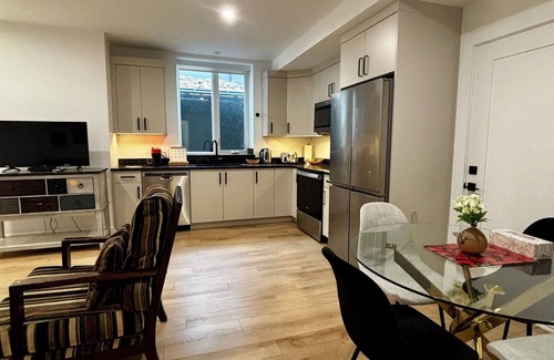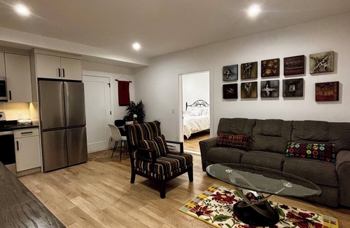 The suite includes a private entrance and is situated on a quiet street, providing you with a tranquil and secluded home away from home.