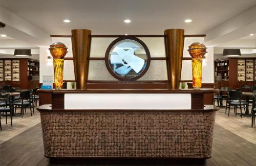 Located on O’Hare International Airport grounds, this hotel offers an indoor walkway to domestic terminals and the Blue-line train station, offering easy access to downtown Chicago. The hotel features 3 restaurants and free WiFi access in the lobby. Every room at Hilton Chicago O’Hare Airport features blackout curtains and sound-resistant windows, along with a 55-inch flat-screen HDTV and work desk with ergonomic chair. Room service is available daily. Andiamo offers a contemporary, elegant atmosphere to enjoy a glass of wine from the expansive wine list or locally-sourced cuisine for breakfast, lunch and dinner. Live music and fine dining come together at the 20s-inspired Gaslight Club restaurant. For a more relaxed, casual setting to catch a sports game, guests can visit the Sports Edition Bar. Grab n’ go food options are also provided. The hotel also offers a barber shop, business center and 50,000 square feet of meeting space. Donald E Stevens Convention Center and Fashion Outlets of Chicago are both 3 miles away from the hotel. AllState Arena and Rivers Casino are a 12-minute drive away.