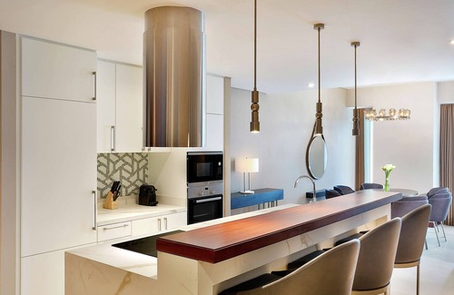 Hilton Doha The Pearl offers 359 accommodations with washers/dryers and minibars. These individually decorated and furnished accommodations have separate dining areas and include dining tables. Beds feature premium bedding. 55-inch flat-screen televisions come with cable channels. Guests can make use of the in-room refrigerators, microwaves, and espresso makers. Bathrooms include separate bathtubs and showers, bathrobes, slippers, and designer toiletries.