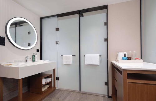Hilton Garden Inn Beihai Jiafu offers 199 air-conditioned accommodations with safes and complimentary bottled water. Memory foam beds feature down comforters and premium bedding. A pillow menu is available. 65-inch LCD televisions come with satellite channels. Bathrooms include showers with rainfall showerheads and hydromassage showerheads, slippers, and toothbrushes and toothpaste.