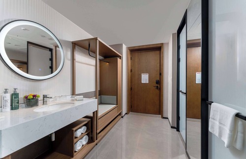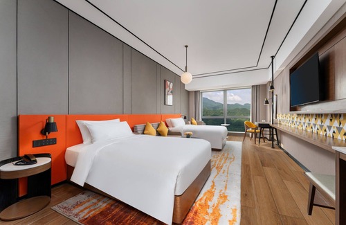Hilton Garden Inn Huzhou High-Speed Railway Station offers 177 air-conditioned accommodations with free minibar items and safes. Beds feature down comforters. 55-inch LCD televisions come with premium cable channels. Bathrooms include bathtubs or showers with rainfall showerheads, slippers, bidets, and complimentary toiletries.