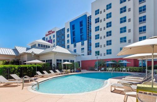 This Tampa hotel is located next to the Tampa International Airport in the Westshore business district. The hotel offers an outdoor pool, on-site restaurant and spacious rooms equipped with refrigerators. Westshore Hilton Garden Inn guest rooms all feature a seating area with a sofa bed and a large work desk. A 32-inch flat-screen cable TV with HBO and free Wi-Fi is provided. All rooms also include a microwave and coffee maker. Guests can eat at breakfast and lunch at The Coast restaurant and get snacks at the 24-hour convenience store. Tampa Airport Hilton Garden Inn features a full-service business center and a modern gym. Raymond James Stadium is a 5-minute drive from the Hilton Garden Inn Tampa Airport Westshore. The University of Tampa is 10 minutes from the hotel and Beach Park is 5 minutes away.