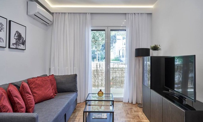 The apartment is in a quiet neighborhood looking the Ilisia Park, close to Megaro Mousikis metro station, Hilton Hotel and The Concert Hall. From the balcony you can enjoy the view of the green square of Saint Haralambos church.