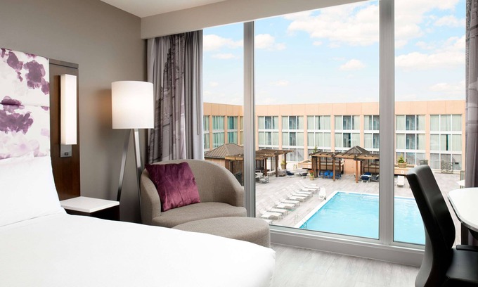 Recreational amenities at the hotel include a fitness center and a seasonal outdoor pool.