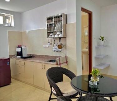 BathroomShower, Bathtub, Hairdryer, Free toiletries, Toilet, Private Bathroom, Slippers, Bathtub or shower, Towels/Sheets (extra fee), Bidet, Towels, Toilet paper, ShampooMedia & TechnologyTV, Flat-screen TVGeneralIron, Ironing facilities, Fan, Hardwood or parquet floors, Trash cans, Smoke Alarm, Fire extinguisher, Key accessKitchenKitchenette, Refrigerator, Washing machine, Kitchen, Kitchenware, Dining table, Wine glassesLiving AreaDesk, Dining areaViewViewBedroomWardrobe or closetOutdoorsTerraceBuilding CharacteristicsPrivate apartment in buildingRoom AmenitiesClothes rack, Drying rack for clothing, Socket near the bed, Non-feather pillowSafety featuresAir purifiersExclusive servicesFree laundry services |