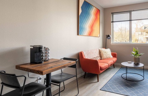 Located in the vibrant Hawthorne District, our apartment is within walking distance of Portland's best restaurants, cafes, bookstores, brewpubs, and distilleries. Other services, like banks and massage therapists, are nearby. About a mile from downtown, you can explore by bike, bus, or on foot. Our sleek, European-style interiors feature high-grade surfaces and finishes, offering comfort and elegance. Note that there may be noise from neighbors; earplugs and a noise machine are available!