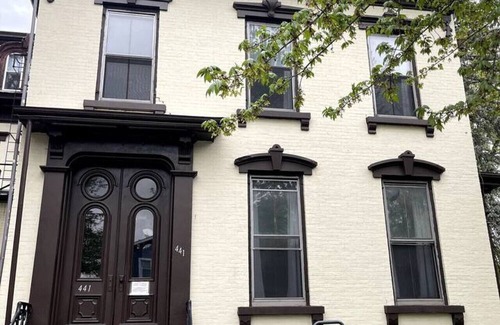 This second-floor apartment features beautiful marble fireplace, plenty of natural light, peaceful stay. The river view is accessible behind the building. The Troy downtown area is less than three miles away. There are seven other units available in the building for a larger party.Our units are not equipped to host any animals. We have security cameras in the common areas of first floor hallway, second floor hallway, third floor hallway, there is no cameras inside of the listed units.