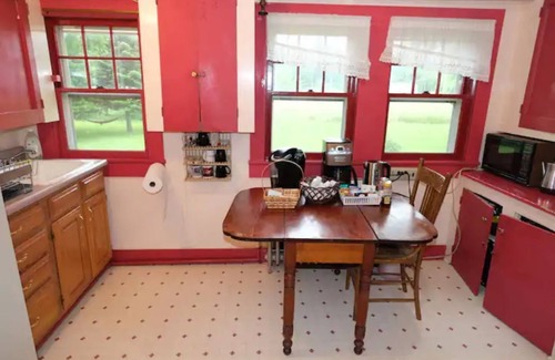 I bought the house a bit more than two years ago. When I bought it, there was old wallpaper on the walls and 100 years of junk through the house. Since then, I've stripped wall paper, refinished the walls and painted the rooms. A lot of the things I found in the house were re-purposed or put on display. I've had a great time making many improvements however, the house will always be an old home and it has some rough edges. This would include things like floors that are smooth but not yet refinished and some areas with linoleum floors. If you have any concerns or questions about staying in a house of this age, please reach out to me before you book; I'll be happy to answer any questions.