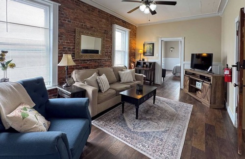 Historic 1888 Loft - Temple Views & Exposed Brick has 1 Bedroom , 1 Bathroom, and max occupancy of 4 people. The minimum rental for this property is 1 nights, but this can change depending on the season you plan on staying. Previous guests have given good rated it, and VRBO labeled it a top-rated Apartment because of the excellent services rendered by the owner or manager of this Apartment, and has consistently provided great experiences for their guests. Most families or guests that use it recommend it to their friends and some of them are repeat guests. Apartment has a friendly neighborhood, and the Nauvoo has interesting places to visit. If you want to learn more about the Apartment in Nauvoo, such as places to visit and things to do nearby, you can check below to learn more.