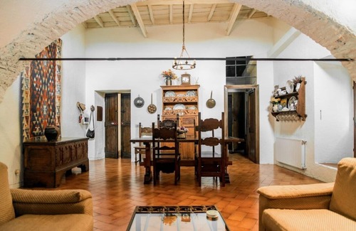Located in the 'centro storico' of the historically important town of Bracciano & adjacent to the 14th Century Castle Odelscalchi, the charming spacious 120 sq metre 'Casa la Castellana' occupies the entire floor of a small 14th Century building and has a private entrance onto a small, quiet piazza. We would like you to think of our apartment as your home away from home rather than a rental property. Our heart went into the restoration of our apartment. It features a large living-dining room with antique stone fireplace, beamed ceilings, and terracotta tiles, a dining table which seats 8 and a fully equipped blue/white tiled country kitchen. Each of two bedrooms has two twin beds and a view of the village below. There are two sofa beds in the living room.