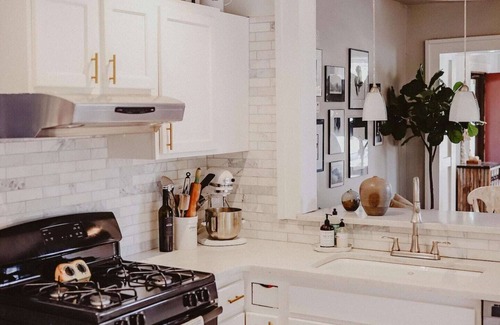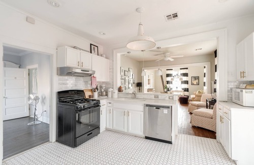 This charming 1917 bungalow in Uptown OKC is centrally located. It is walking distance to great bars, coffee shops, restaurants, pastry shops, boutiques, and brunch spots in the Western Ave District. It is 1 mile from Paseo Arts District, 1.5 miles from Uptown 23rd District, 2.5 miles from Plaza District, 3 miles from Midtown District, and 4 miles from Downtown OKC. Well appointed kitchen and bar area, WIFI w/Apple TVs, and expansive front porch.