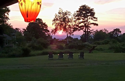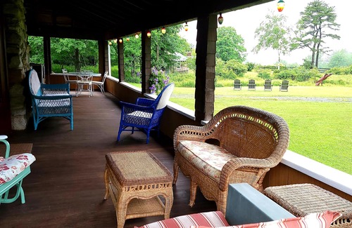 The outside environs (surrounded by eleven plus private acres of wooded, family-owned property) boast inviting wraparound porches/patios with lovely sunset views, warm southerly exposure, a seven-person deluxe hot tub, fire pit, Weber grill, hammock, stone-walled entrance, ample free parking, circular drive, Adirondack chairs, etc., all in a quiet, peaceful setting.